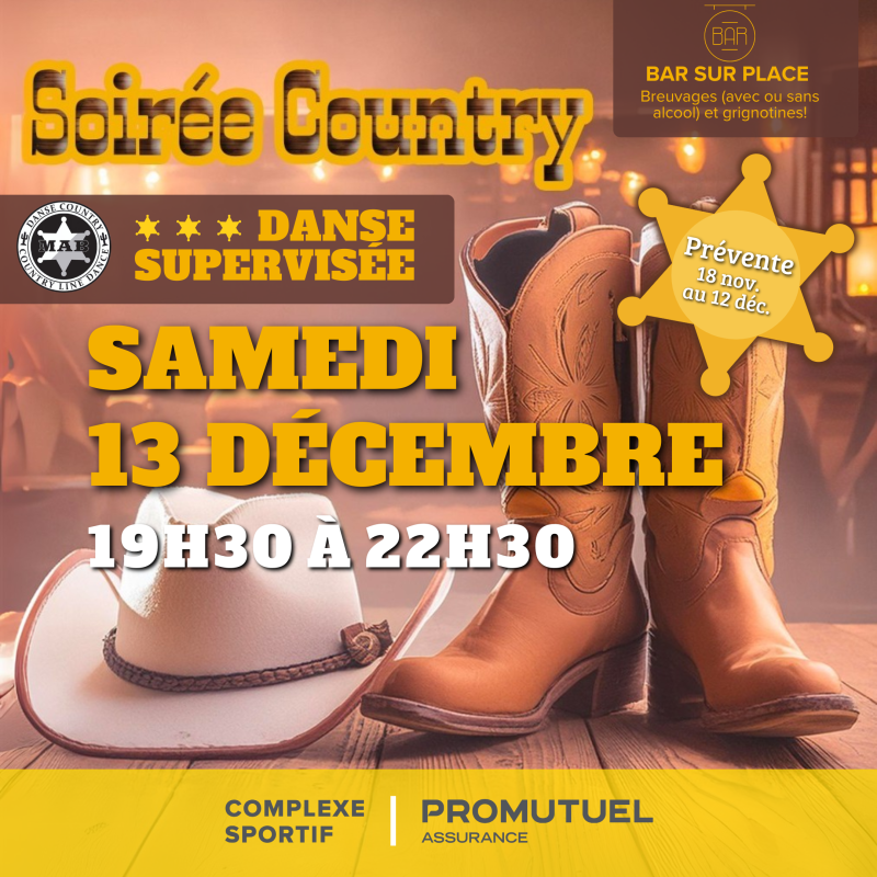 Venez à notre Soirée Country au Complexe sportif Promutuel Assurance !